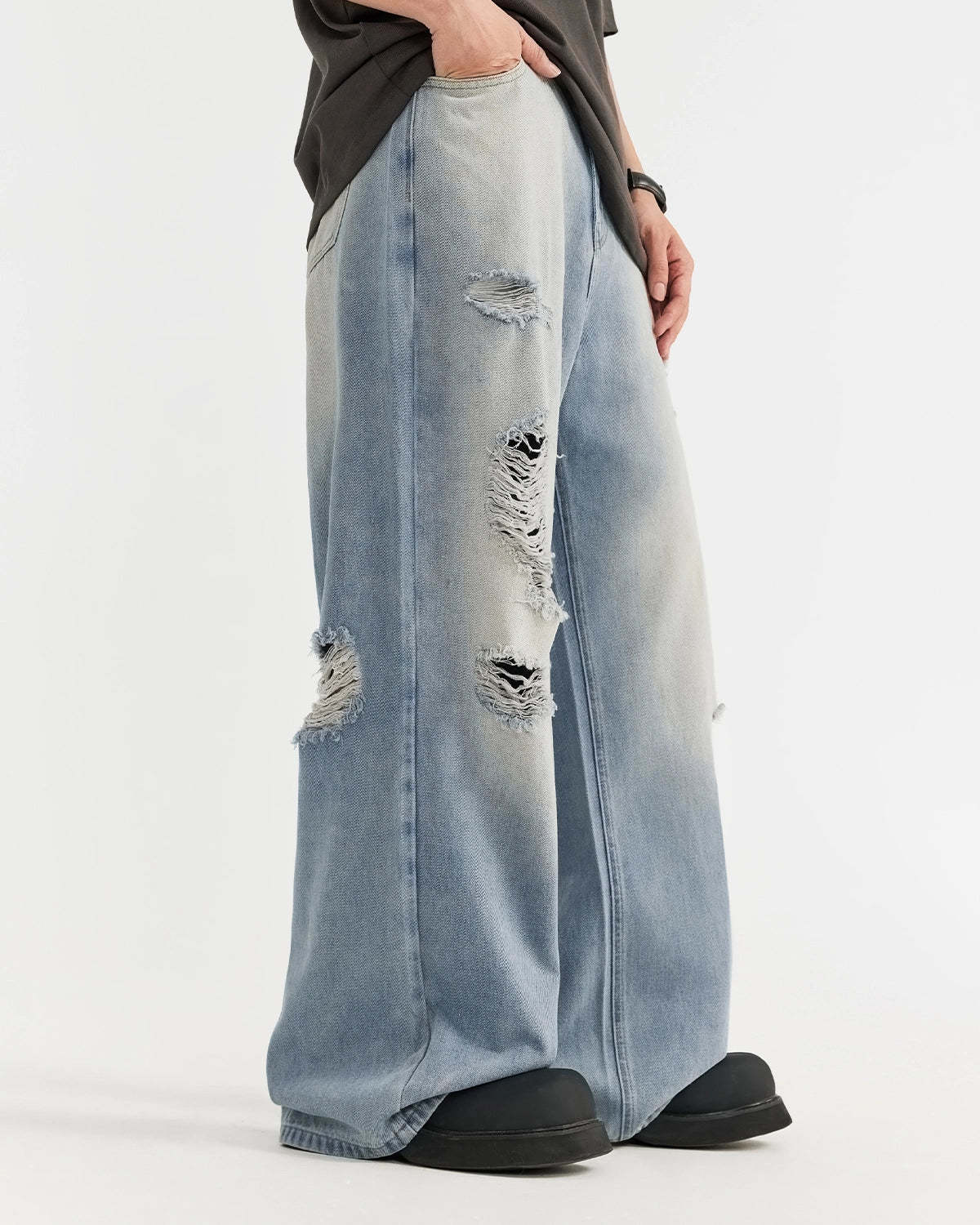 Distressed Ripped Blue Jeans | Inflation Streetwear