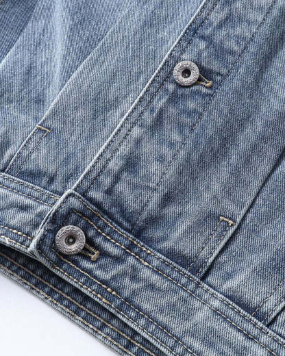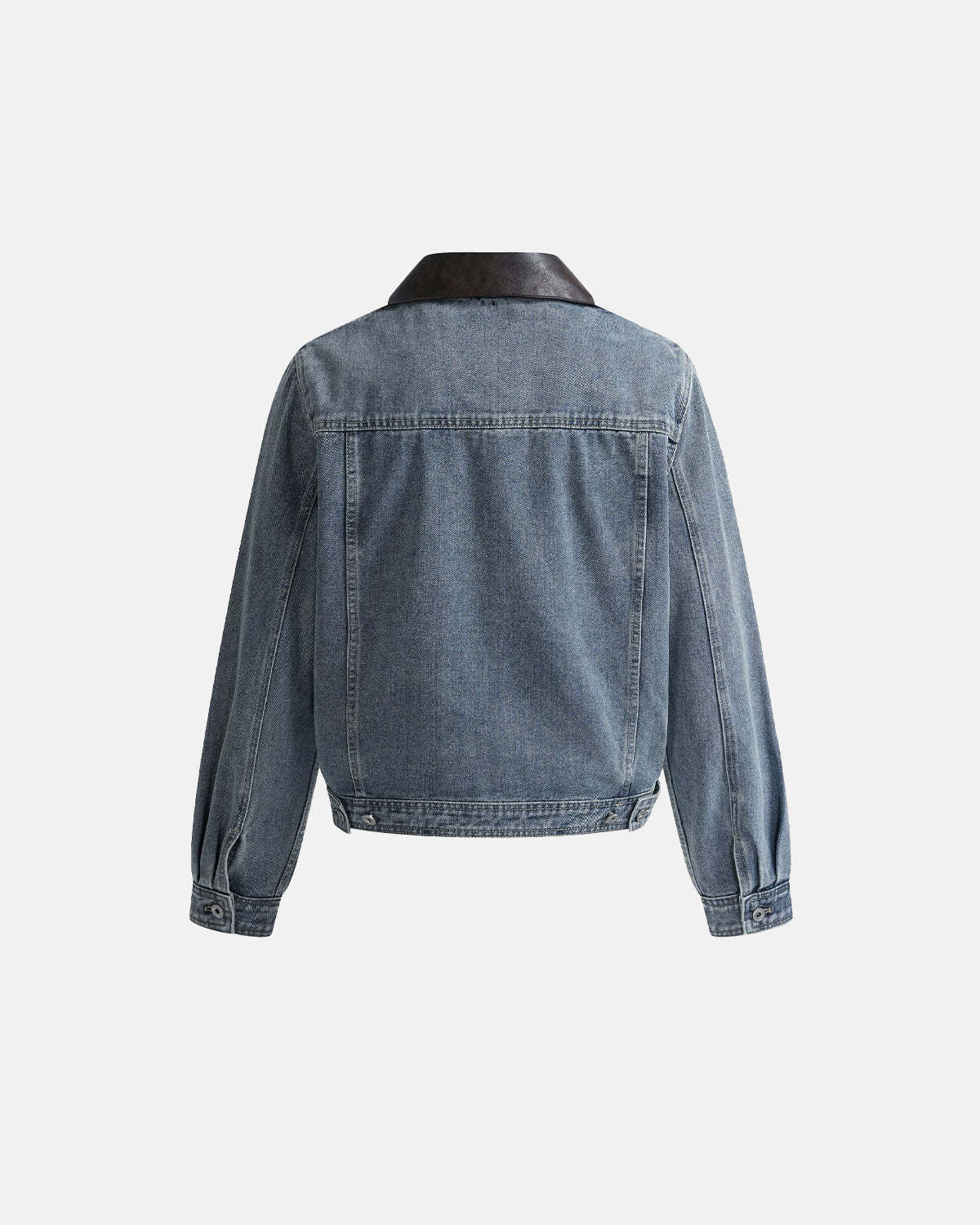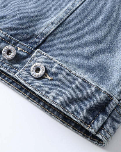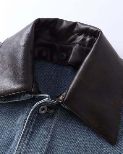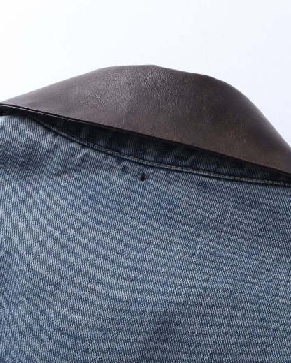 Leather Collar Washed Denim Jacket | Inflation Streetwear