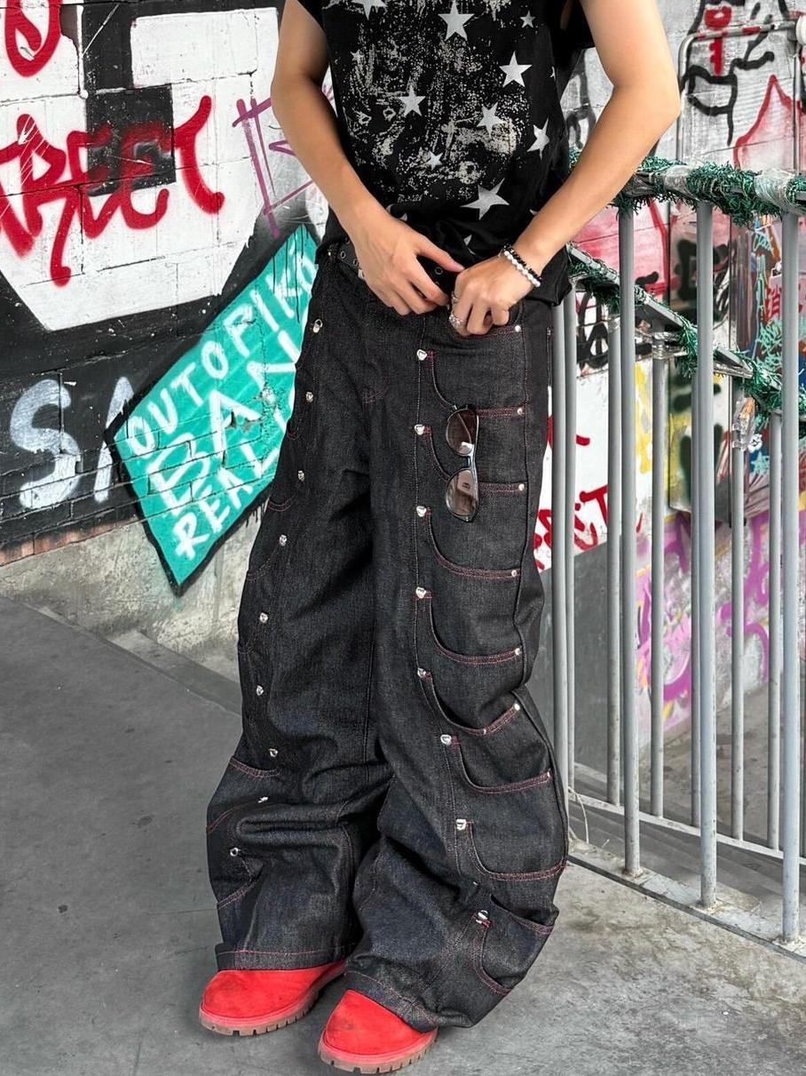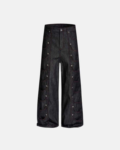 Metal Buckle Stitching Straight Leg Jeans | Inflation Streetwear