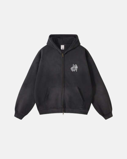 Skeleton Fingers Monkey Wash Zip Up Hoodies | Inflation Streetwear