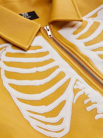 Thesupermade Hip Hop Bones Embroidered Leather Jacket - 1833