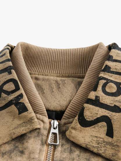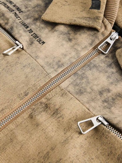 Distressed Double-layer Collar Workwear Jacket